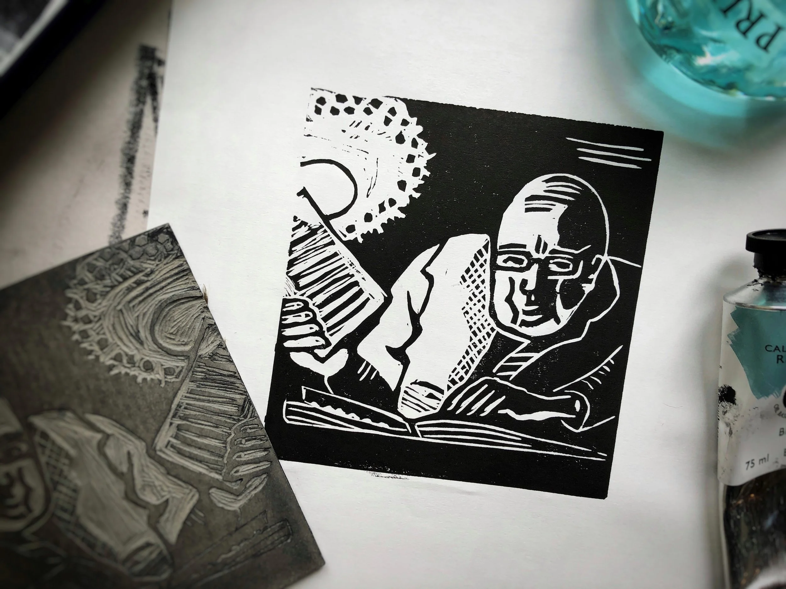 For a limited time, those who donate $60 or more will receive a limited edition, handmade lino print, Albacete at Work.